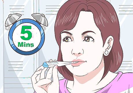 Take your basal temperature daily. Use a basal thermometer each morning before you get out of bed. You'll need to leave the thermometer in your mouth or anus (depending on the model) for 5 minutes. Track your temperature daily. It will rise by a fraction of a degree on the days you ovulate, so avoid sex on the days your temperature increases. It's best to track your temperature every day for at least one cycle to become familiar with your body's normal temperature, as well as its normal fluctuations. Your basal temperature is your temperature while you are at rest. This means that you should take it before you even get out of bed.