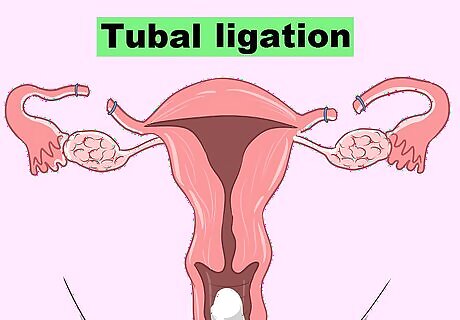 Choose a tubal ligation. Often referred to as “getting your tubes tied,” a tubal ligation is a popular form of female sterilization. It has a 99.5% effectiveness for preventing pregnancy and can be a great option for women who don't want to have a child in the future. You may want to choose this option if you have lingering doubts about sterilization. This procedure can sometimes be reversed. However, only 50-80% of women who have a reversal will be able to get pregnant.