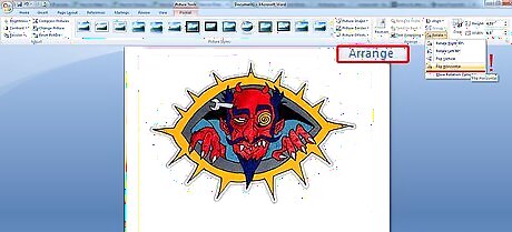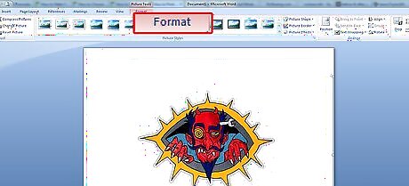 Click on any picture. The Format button will appear under "Picture Tools", which will be highlighted in red. Click on it if it is not already highlighted.