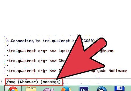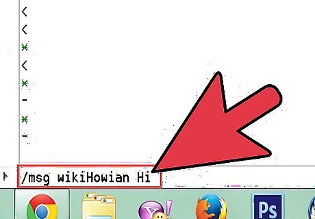 For example, if you wanted to private message, say, a user named "wikiHowian", you'd type this: /msg wikiHowian Hi. Then the person you messaged would have a message saying "Hi." on it.