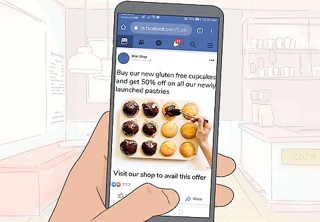 Give out coupons, special discounts, or deals to attract customers. Most people dislike the idea of "missing out" on a good deal, so they're more likely to buy a product if there’s a special bonus that's not normally available. A lot of consumers will buy something they wouldn’t have normally purchased just because it’s on sale or comes with some kind of extra benefit. Potential incentives include: New member discounts. If you offer cheaper prices for people who make an account, sign up for a mailing list, or become a member of your service, you’ll build up a larger reoccurring customer base. Buy-one-get-one-free deals. Offer the customer a free reward (this can be more of your product or a different product entirely) if they buy a certain amount of your product. Holiday deals and sales. Running a promotion for holidays can really generate new business. People tend to buy more goods on certain holidays, and a sale is a great way to attract folks. Rebates. By putting the responsibility to claim a discount on the customer after the purchase has been made, you can save money relative to other promotional deals because many will forget or neglect to send in their rebates.