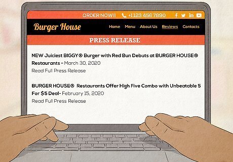 Get the word out about your new product in local newspapers. First, brainstorm what makes your product new or interesting. Ask yourself what you think is most appealing about your product, and what will excite journalists to cover its release. Once you start writing, make every word count. Keep the announcement brief at about 300-400 words maximum. Email it to any news organization in the area you think might be interested. If your product is available online and you have some budget to spend, consider using the help of a press release firm. They can write articles for you and post them on hundreds of relevant news sites. Make the first line of your press release clear and to the point to get journalists' attention. If your ice cream shop is giving away free ice cream to promote your new menu, write something like, "Ice cream shop will give free ice cream to first 100 customers next month."