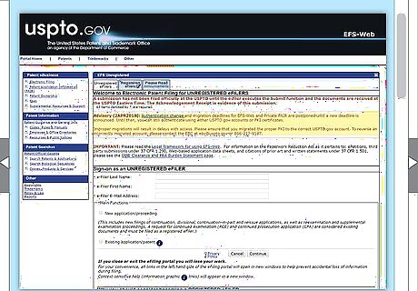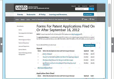 Download the cover sheet from the USPTO website. The USPTO has links for all forms valid through 2020 available at https://www.uspto.gov/patent/forms/forms-patent-applications-filed-or-after-september-16-2012. The categories are listed in alphabetical order. Simply scroll down to "Provisional Patent Application" to find the cover sheets. The first cover sheet listed is the one for filing your provisional patent application online. The USPTO recommends this method. However, there is another cover sheet available if you plan to mail in a paper application. A filing guide that will take you through the process of filing a provisional patent application is also available for download. It's a good idea to download this and read it before you get started.