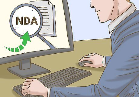 Have a lawyer review an NDA you drafted yourself. Even if you use a template from a major legal document service, it's still a good idea to have a local lawyer look over your NDA. Since the lawyer isn't representing you, they'll typically charge a smaller fee just to review the document and give you advice on it. At a minimum, a lawyer can let you know whether the document you created would protect you if you shared your idea with someone else and they stole it and attempted to develop it on their own. Keep in mind that you might need more than one agreement, depending on who will have access to your idea and your reasons for working with them. For example, an NDA for a potential investor would likely be different than an NDA for a potential employee who would be working directly on the development of the idea.
