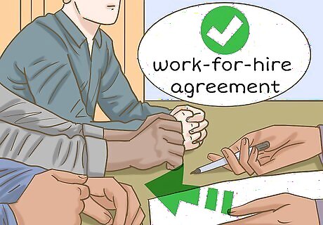 Use a work-for-hire agreement for employees or independent contractors working on your idea. You can download a form or template online for a basic work-for-hire agreement. These agreements are pretty standard for employees, and simply state that anything they come up with while working for you is your intellectual property and not theirs. Work-for-hire agreements are particularly important if you have employees or contractors working on the development of your idea. They'll likely be brainstorming different strategies to implement your idea. Without a work-for-hire agreement, they could take one of their ideas that you rejected and develop it on their own. A proper work-for-hire agreement may also be useful for ensuring ownership of copyright in works created by your independent contractors. Under US copyright law, the client who commissions the work is not considered the "legal author" and does not own the copyright unless otherwise agreed in a written document signed by the contractor. Only certain types of works can be "works for hire" by contractors, under the definition in the US copyright law.