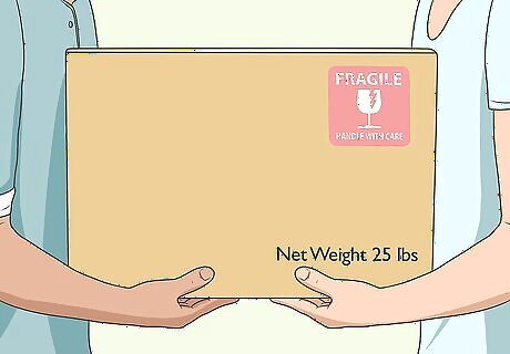 Pack smaller, lighter boxes as much as possible. For back safety, an average adult should not lift bulky items that weigh more than 25 lb (11 kg) without assistance. So, instead of packing fewer, bigger boxes full of stuff, fill more, smaller boxes with your moving items. When you do need a bigger box, for instance for an awkwardly-shaped item, fill the rest of it with lightweight items or packing material to keep it under 25 lb (11 kg).