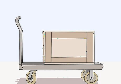 Use hand trucks, dollies, carts, and other moving tools. Basically, any time you can use wheels to your advantage, do so. Hand trucks are great for moving boxes and appliances—you just need to slide the platform under the item, secure the item in place with the straps, tilt back the handle to lift the item onto the two wheels, and push or pull the hand truck to your destination. Hand trucks are often called dollies, although technically a dolly has a level platform and four wheels (meaning you have to lift the item onto it). You can rent hand trucks and other moving tools from home improvement stores and tool rental stores. If you rent a truck from a moving company, you may also be able to get some moving tools to use. No matter what moving tools you use, make sure you know how to use them properly, follow all safety recommendations, and don’t exceed the maximum safe load. If you’re not sure how to use something, ask for a demonstration when you rent it.