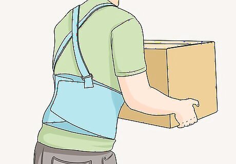 Try a back belt but accept its limitations. Many workers who lift heavy items for a living—like professional movers—use back belts on the job. In theory, they help stabilize your core and back muscles, thereby reducing your risk of injury. While this may be the case, it’s also true there is inadequate scientific evidence to confirm this claim. So, it’s possible that it may not actually help to wear a back belt, but it also likely won’t hurt to do so. It may be detrimental, however, if wearing it gives you a false sense of security, leading you to try lifting too much or with poor technique. Most back belts are made of sturdy fabric, loop over the shoulders, and are secured at the waist by adjustable hook-and-loop closures.