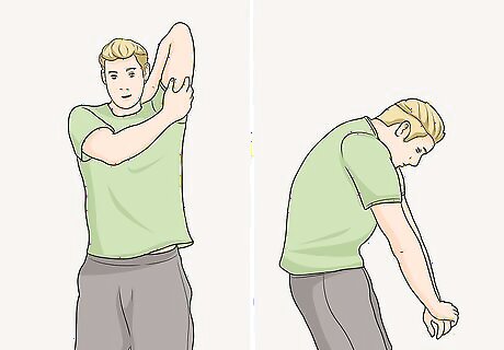 Stretch before, during, and after moving your stuff. Do several back stretches and some general stretching for 5-10 minutes before you start moving items. Then, every hour or so, take a break, drink some water and rest for 5 minutes, and do some stretching for another 3-5 minutes. Finish off your day by doing some light stretches as well. Hip twists, shoulder rolls, toe touches, and several common yoga poses are all good back stretches to utilize. Drink water during your hourly break, and also several times in between each break. It’s important to stay hydrated while working. If you need to take more frequent breaks, do so.