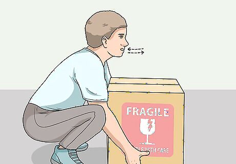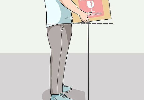 Keep the item at waist height as you hold it. The bottom of the item should be right about at your hips, with your hands at or just a little above that level—depending on where you’re gripping the item. Do not lift the item above shoulder height without assistance. Hoisting heavy objects higher than shoulder level is an easy way to injure your back. Instead of trying to move a box onto a high shelf to unpack later, for instance, move it to a table and unpack it there.