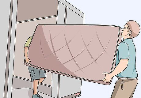 Get help lifting bulky items that weigh more than 25 lb (11 kg). Depending on your physical condition, you might feel confident lifting a box of books that weighs more than this. However, bulky or awkwardly-shaped items, like furniture or home appliances, should be lifted with helpers to reduce your risk of injury. Lift in tandem with your helper or helpers when dealing with the heavy items. Make sure everyone uses proper technique and lifts at the same time—try counting out “1, 2, 3, lift!”