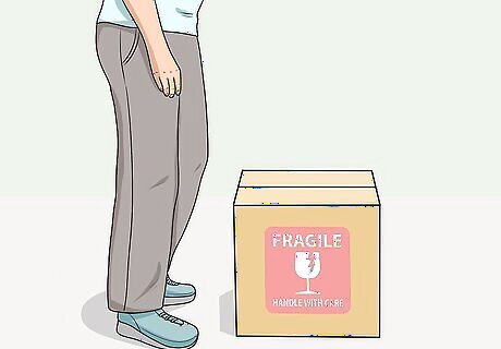Get close to the object and take a wide stance. Place your feet at just beyond shoulder width and stand as close to the object as you can. If you’re picking up a smaller moving box, for instance, stand so that your toes are beyond the front of the box. Taking a wider stance gives you a stronger, more stable base for lifting. It also makes it easier to lift with your legs instead of your back. Your goal is to reach out as little as possible to grab the item before lifting it.