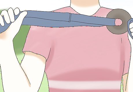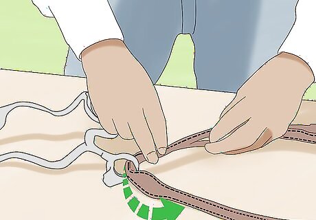 Tie a second length of twine to the other side of the guard, too. Repeat the process of folding the twine in half and pulling it through the center of the bit guard. Draw the ends of the twine through the loop you just made and pull on it to tighten it across from the first piece of twine. Use a piece that's about 6 feet (1.8 m) long. You don't need to make a foot loop on this side.