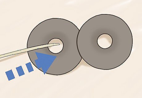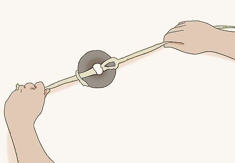 Slip a piece of bailing twine through the center of the bit guard. Fold the twine in half and push the folded piece through the center of the bit. Slip the ends through the loop you've just pulled through the center. Tighten it up to tie the twine to the bit guard. Use a piece that's at least 6 feet (1.8 m) long.