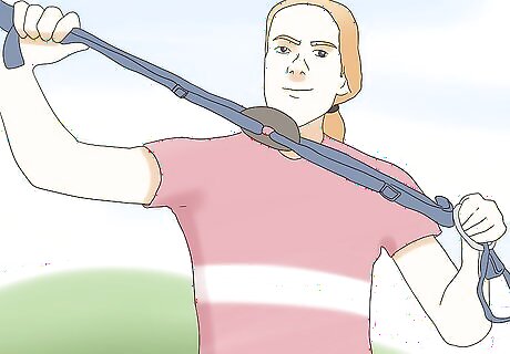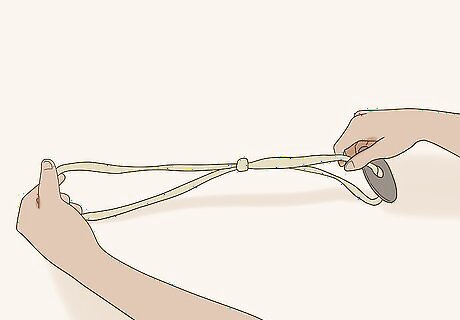 Make a big loop for your foot on the twine you just slipped through the guard. At this point, you can tie a loop in this side of the twine. You can use a slip knot or a square knot to tie off the top of the loop. The loop should be big enough for your foot to go through. You'll need to step in it in a minute.