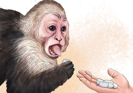 Reward your capuchin’s good, quiet behavior. When your capuchin is quiet and calm, make sure you offer positive reinforcement in the form of a treat or praise. Marshmallows, yogurt covered raisins, mealworms, or another favorite food works well. You can also use a new toy or object your capuchin will find interesting.