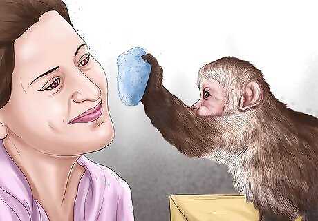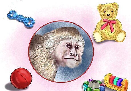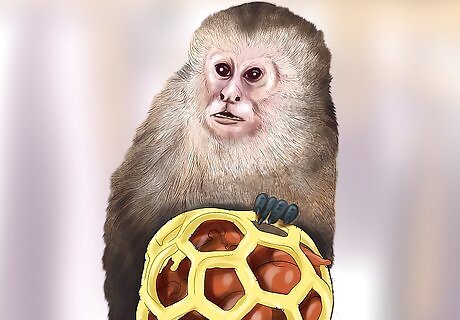 Provide your capuchin with interesting toys and puzzles to keep them occupied. Your capuchin might be vocalizing and acting out because it is bored and needs mental stimulation. To occupy and quiet your capuchin monkey, try out these toys or objects. Tire swings and climbing ropes provide them with a lot of entertainment. Capuchins like to handle things and tear them, so give them soft items such as cardboard. Make sure the toys do not have sharp edges or hazardous coatings. Capuchins like things that are bright and shiny.
