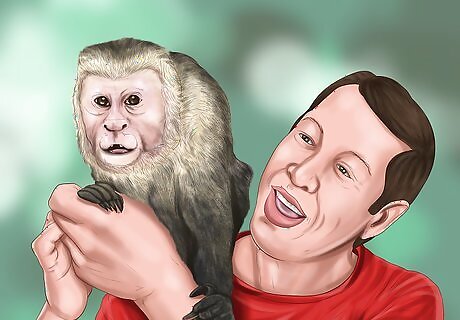 Respect the differences between a capuchin and more traditional pets. While dogs and cats have lived with humans for thousands of years, capuchins are wild animals and not domestic pets. As a result, you should not hold them to the same standards as traditional pets, expecting them to be tame and quiet. If you want a quiet pet, a capuchin might not be the right choice. While capuchins might seem docile, calm, and friendly as infants, they often become louder, unpredictable, and sometimes aggressive as adults.