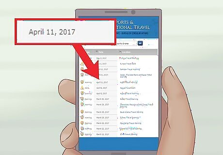 Note when the travel alert or warning was posted. Check the date the travel alert or warning was posted on your government's website. Make sure it is recent, within the last one to two weeks. A travel alert that is a few months old may no longer be relevant or accurate. Most government websites will keep up to date travel information on their website, but it is always worth checking the posted date for the alert or warning. If the travel alert or warning is a few weeks old, you may want to search for more information on possible risks in the country on your own.