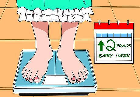 Notice if you gain a lot of extra weight all of a sudden. It’s normal and healthy to gain weight while you’re pregnant, as you’re feeding a growing baby. However, healthy weight gain is usually no more than 1-2 pounds per week. If you suddenly gain more than 2 pounds within a week or less, contact your doctor to get a checkup. Ask your doctor how much you should be gaining each week. Every pregnancy is different, so it’s possible that you will need to gain more. Don’t worry that you’re gaining too much weight unless your doctor asks you to make changes. If you have any concerns, check with your doctor.