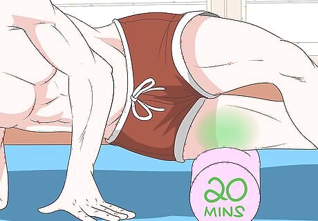 Use a foam roller for 20 minutes immediately after a workout. Plan to spend 20 minutes rolling your muscles after your workout. You don’t want to overwork your muscles by doing too much. Likewise, less than 20 minutes isn’t enough time to be truly effective. You’ll see the best results if you do this within several minutes of working out. Your muscles probably won't be sore immediately after your workout, but this will help reduce pain later.