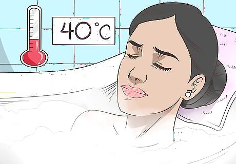Heat your muscles with a hot tub, hot bath, or hot shower. Heat the water to about 40 °C (104 °F) and submerge your muscles. Warm your muscles for 3 minutes. This will relax the muscles and can help release any built-up lactic acid. The most convenient way to flush your muscles is to do it in the shower or using two separate buckets of water. As an alternative, you might sit in a sauna.
