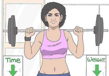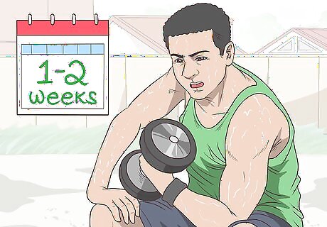 Integrate new exercises over a period of 1-2 weeks. If you want to try a new exercise, allow time for your muscles to get used to it. For example, maybe you decide that you’re ready to try weight-lifting. Instead of trying to do a full strength training session, try to do a little bit each day for 1-2 weeks. This might mean starting with just a few reps or a light set of weights. As your muscles get used to the exercise, you can gradually increase the intensity. Consult a trainer if you need help starting a new routine.
