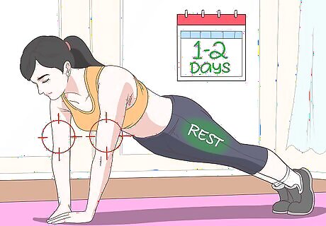 Focus your workouts on your least sore muscles while you recover. This is another way to give your sore muscles a break. If it’s your quadriceps that are really bothering you, use the next 1-2 days to work on other muscle groups. You could focus on doing your arm routine, or doing a core-focused workout. You can also cross-train by taking a day or 2 to do yoga or another low-impact workout.