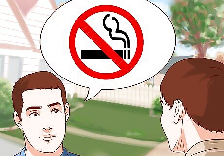 Refrain from allowing anyone to smoke in your home or car. One way to eliminate thirdhand smoke is to get rid of all sources of smoke in your life. Smoke can linger on your clothes and hair even if you don't smoke in the house, so don't smoke in your car either. Don't allow any visitors to smoke in your home or car. Ask them to step outside if they must smoke. This includes cigarettes and electronic cigarettes.
