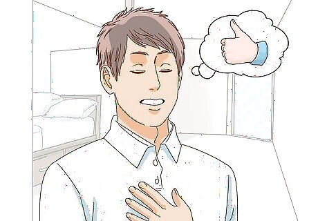 Leave the room or situation if you need to. Most people won't even know you're having a panic attack, so try not to make yourself more anxious by worrying about that. If you're in a situation that's giving you anxiety, you can just take yourself out of the situation. Don't be afraid to walk away; everyone will likely just think you're taking a bathroom break or just need a breath of air. However, there's no reason you can't stay in the room or area if you think you can cope. In fact, doing so may help diminish your anxiety in that situation next time. Even if the situation you're in isn't causing your attack, you can still take a break if you need to. Many attacks don't have a specific trigger, but changing your situation may help. For instance, if you're driving, you may want to pull over. If you were asleep, you may want to get up and walk around.