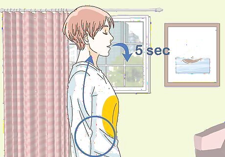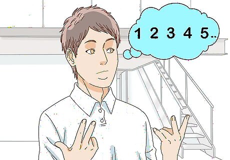 Breathe out through your mouth and count to "5." Let the breath out slowly. To help slow yourself down, try gathering your lips when you breathe out, just like you're trying to whistle. Imagine you're breathing out your anxiety. Try giving it a color, too, such as red.