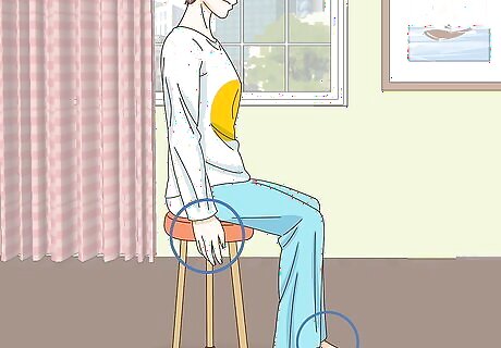 Situate yourself in a comfortable position. If your clothing is too tight, try to loosen it. Place your feet flat on the floor if you're standing or sitting, aiming for shoulder-width apart. Put your arms at your side, either on the arms of a chair or hanging loosely down. If you're in a reclined position, get on your back with your hands palms-up by your side.