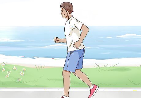 Aim for 30 minutes of exercise most days of the week. Exercise is a great stress reliever, so try to make it a priority in your life. Any exercise is fine, from walking to swimming to playing basketball with your friends. If you need to, break up your exercise into 10-minute increments throughout the day to make it easier to get it in. You don't have to hit the gym to exercise. Try incorporating it into your day in small stints. Take the stairs or park away from the front door when you go to the store. Things like housework and gardening also count for exercise.