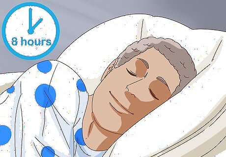 Get 7-8 hours of sleep each night. Anxiety can certainly make it more difficult to sleep, but rest is important for keeping your anxiety at bay. Try relaxation techniques at night to help calm your mind for sleep. If you have trouble going to bed on time, set an alarm for an hour before you need to be in bed. That way, you have that time to shut off your electronics and prepare your mind for bed. Start a relaxing routine before bedtime, such as having a cup of herbal tea, taking a bath, or reading.