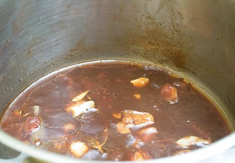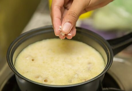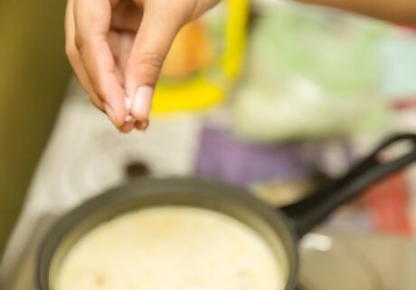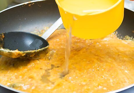 Replace some of the oversalted liquid. If you are making a soup, curry, or other liquid dish, the easiest option is to add more liquid. Pour out some of the salty liquid and discard it. Add water, unsalted broth, or milk, depending on the dish.