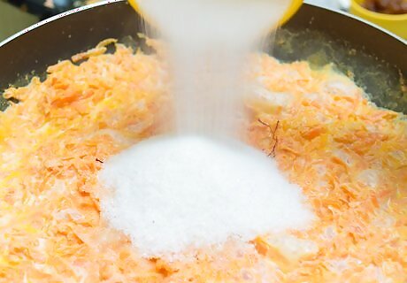 Increase the recipe size. If you have the time and pantry supplies, add more ingredients. For instance, add more meat and vegetables to your stew, or unsalted butter to your sauce. This will reduce the ratio of salt to other flavors. This is the only way to fix an oversalted dough. If you prefer more neutral flavors, grind cauliflower to a fine consistency and mix it into the liquid. You can also wilt spinach, kale, dandelion, or any leafy greens if they go with the recipe, as they can help dilute excessive salting.