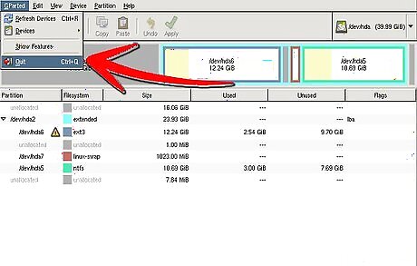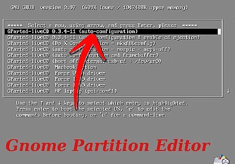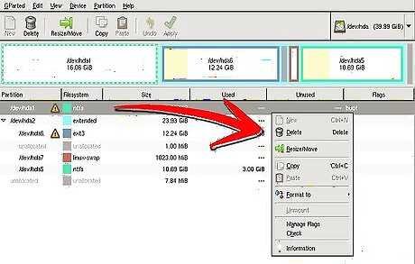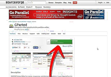 Download GParted live CD from http://sourceforge.net/projects/gparted/