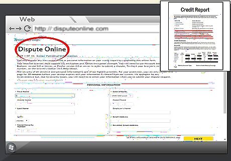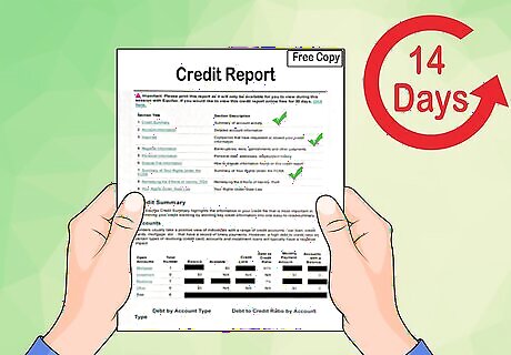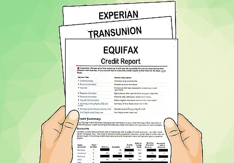 Obtain credit reports from all three agencies. You are entitled to one free copy of your credit report every 12 months from each credit agency: Equifax, Experian, and Transunion. Visit the website of each agency to receive a free copy of your credit report, or you can visit AnnualCreditReport.com to receive one free copy from each agency. You can also request a three in one credit report, but for a fee of $40. You can still request your credit report if you have already used up your free reports for the year; however, you will have to pay a fee.