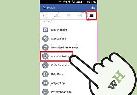 Go to "Settings." On the top right of the app tap settings icon. Tap on it to bring down a submenu. Tap “Account Settings” from here, and you will be brought to the Settings screen.