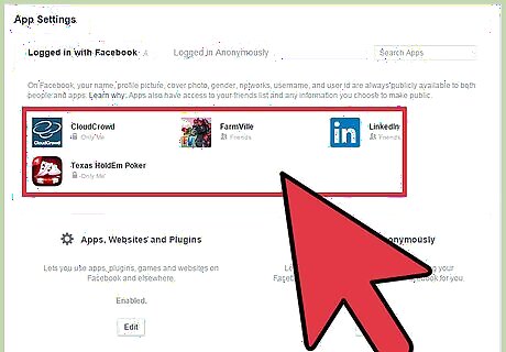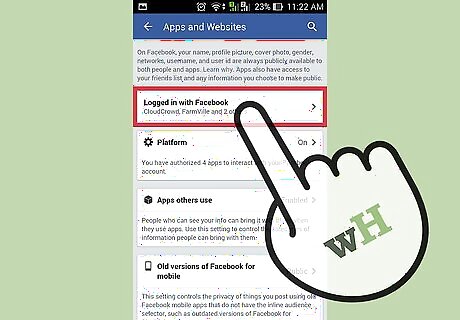 View your apps. On the App Settings page, you will be able to see all the apps you've connected with your Facebook account. These are found under the “Logged in with Facebook” tab. Click on the Show All link below the apps to display all of your apps.
