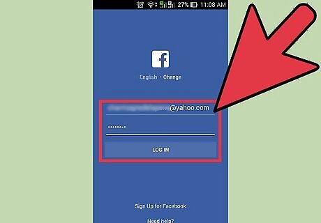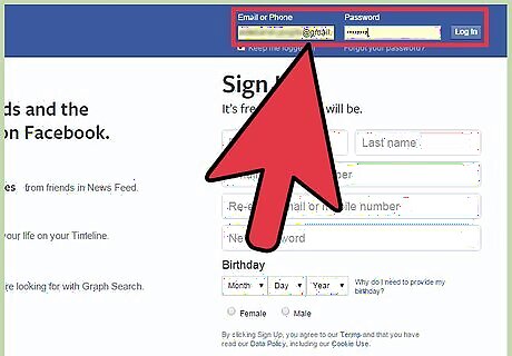 Log in. Use your Facebook account and password to log in. The login fields are found on the upper right corner of the page. Click the “Log in” button to proceed.