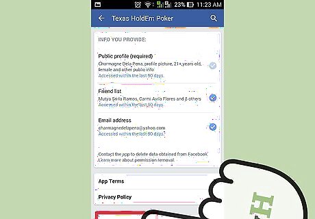 Select Zynga Poker. Scroll through the list until you see Zynga Poker. Tap on it to see its settings on Facebook. You can control how the app interfaces with your Facebook account from its settings page.