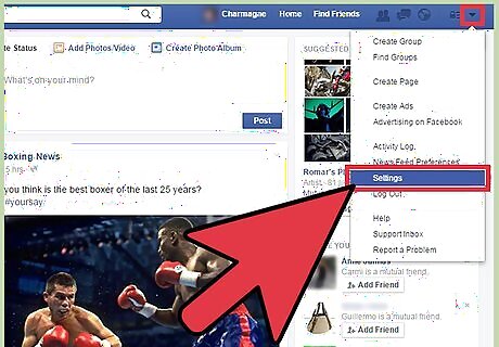 Access the Settings menu. Inside your Facebook dashboard, go to the upper right corner toolbar. Click the down arrow. Click on “Settings” from the menu, and you will be brought to the General Account Settings page.
