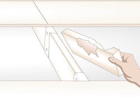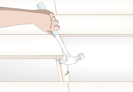 Put tin flashing over any of your damaged joists. If you accidentally damaged any of your joists or they are worn down where they meet the board, you can reinforce the joists by putting a sheet of tin flashing in the center. Apply pressure to both sides at the same time by using both of your hands to bend the flashing around the edges of your joist.Tip: Tin flashing is designed to insulate 2 pieces of wood that are touching to prevent friction. They look like thin metal sheets and are usually folded quite easily to fit a shape. Put on some thick construction gloves to do this. Tin flashing comes in paper-like sheets if you want a more flexible option.