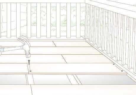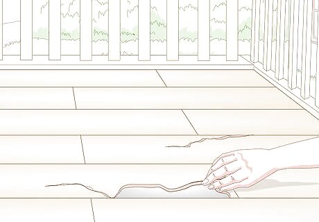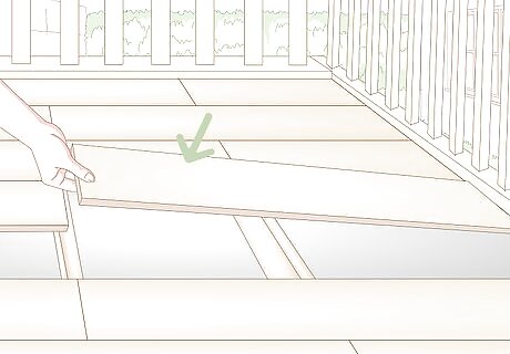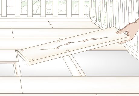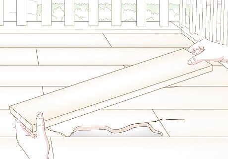 Inspect your deck to see how many boards need to be replaced. If part of a board is damaged or needs to be repaired, it is easier to replace the entire board to ensure that the wood is evenly secured against the joists underneath. Walk around your deck and note the number of boards that need to be replaced on a sheet of paper. You could choose to replace part of a board, but it would require you to saw through a board while it’s installed on your deck. This is highly dangerous for the structural integrity of your deck if you end up cutting a joist.