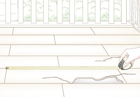 Use a measuring tape to determine the length of your boards. Measure the entire length of any individual boards that you’re replacing by hooking a measuring tape on one end and pulling it out all the way to the end of the board. Measure each individual board that you plan on replacing, since the length of each board may be different. Write these measurements down on a sheet of paper to make them easy to refer to when you go to order your replacement boards.