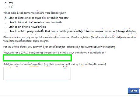 Type or paste the web address that proves the person is a sex offender. This goes into the "Web address" field. You can also provide any relevant information you wish to include in the blank below the "Web address" field.