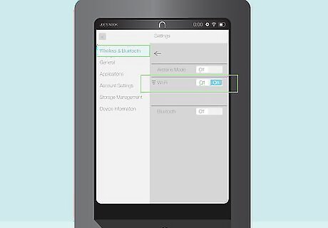 Connect to a Wi-Fi network. You cannot perform a factory reset without being connected to a Wi-Fi network. It is best to connect to a private network, but it can be done on a public network, as the information should be encrypted by Barnes and Noble's system.