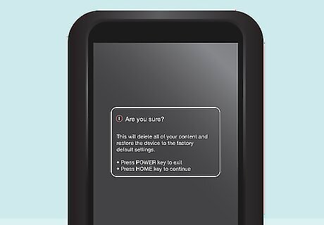 Confirm the reset. A new message will appear on your screen asking if you are sure and explaining that you will lose all content on your device. Press Power to exit, or press Home to continue.