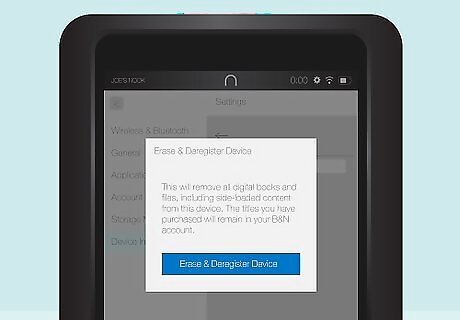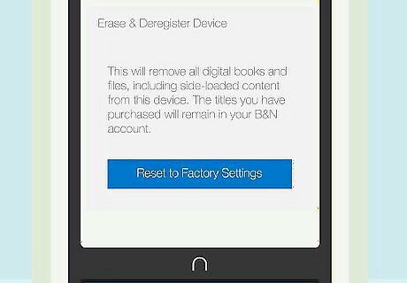 Click Erase & Deregister Device. Then, you will confirm this selection by tapping Reset Nook. At this point, your Nook should go through the process of restoring to its original factory settings. All of your settings and content will be removed from the device.